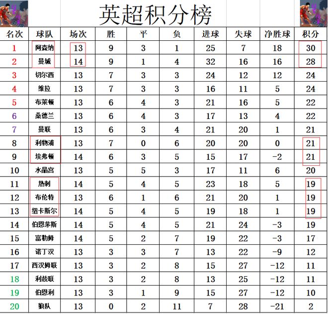 積分榜方面,曼城驚險贏球后,近5輪贏了4場,先賽的他們將和阿森納的差距縮小到2分,坐穩(wěn)了第2的位置。熱刺戰(zhàn)平紐卡斯爾,兩隊積分還是一樣,熱刺凈勝球優(yōu)勢排在第11,紐卡斯爾第13。埃弗頓贏球后,則是暫時追上利物浦升至第9。