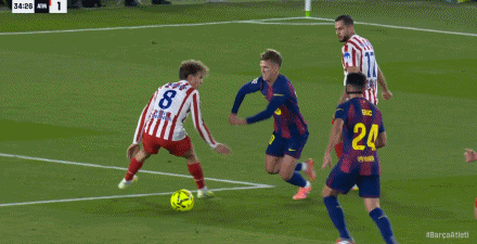 第45+4分鐘,佩德里人球分過后推進(jìn)送直塞,皮球被對(duì)方后衛(wèi)攔截