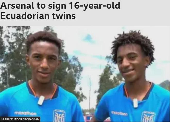 BBC也發(fā)文報道阿森納將簽約16歲的金特羅兄弟,并且BBC表示兩名小將2027年正式加盟后將簽下一份5年合同。