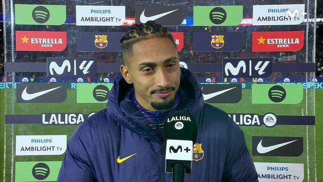 在巴薩3-1逆轉(zhuǎn)馬競的聯(lián)賽中,拉菲尼亞的進(jìn)球吹響了球隊(duì)反攻的號(hào)角,賽后當(dāng)選全場最佳的他接受了Movistar+的采訪。