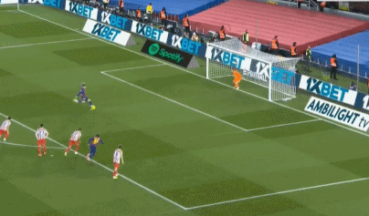 第19分鐘,亞馬爾大范圍長(zhǎng)傳被斷,莫利納送出過頂長(zhǎng)傳,庫巴西造越位失敗,巴埃納單刀巧射破門,馬競(jìng)打破僵局,1-0!