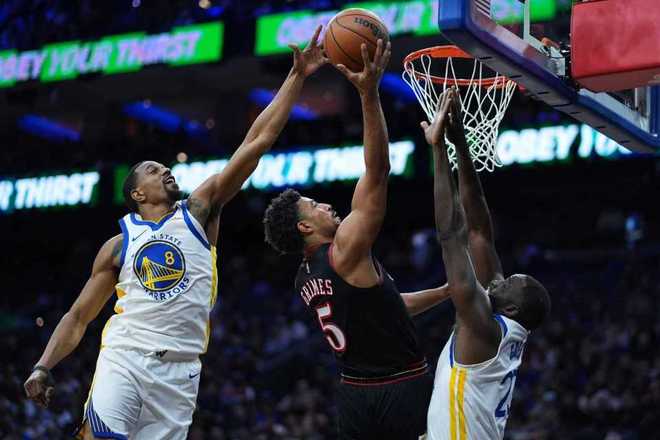 進(jìn)入末節(jié)比賽,愛德華茲上籃與沃克暴扣擴(kuò)大18分優(yōu)勢(shì),希爾德、斯潘塞與梅爾頓聯(lián)手得分打停76人,重回比賽波斯特三分與梅爾頓中投得分,勇士已經(jīng)打出一波15-0攻勢(shì)追到僅差3分。博納上籃命中,勇士立即請(qǐng)求暫停,雙方?jīng)_擊內(nèi)線各得4分,斯潘塞三分命中。馬克西中投維持4分優(yōu)勢(shì),波斯特三分與桑托斯兩次反超3分,76人接連打鐵不中后馬克西上籃追分。斯潘塞關(guān)鍵三分命中,格萊姆斯突破2+1追到差1分,梅爾頓低級(jí)走步失誤,馬克西拋射不中。桑托斯搶籃板犯規(guī),但博納兩罰不中,雙方隨后爭(zhēng)球勇士獲得球權(quán)立即請(qǐng)求暫停。梅爾頓突破打板不中后拼搶出界,勇士繼續(xù)獲得球權(quán),76人立即戰(zhàn)術(shù)犯規(guī),其中第二次犯規(guī)76人挑戰(zhàn)成功取消埃奇庫(kù)姆的犯規(guī)。勇士繼續(xù)手握球權(quán),斯潘塞開球失誤被搶斷,馬克西中投三不沾,但埃奇庫(kù)姆補(bǔ)籃準(zhǔn)絕殺,馬克西壓哨大帽梅爾頓,最終76人99-98險(xiǎn)勝勇士。